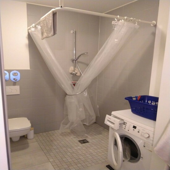 Das Badezimmer ist mit einer Badewanne und einer Dusche ausgestattet. Die hochwertige Glasdusche ist als „walkin“-Duschen gestaltet und somit barrierefrei.